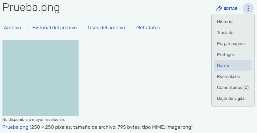 - Puedes proteger una imagen u otros archivos desde la página de descripción del archivo, siguiendo este mismo proceso.
