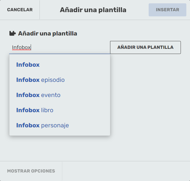 {{NombreDePlantilla}}, reemplazandoNombreDePlantillacon el nombre de la plantilla que quieras colocar. También salir una lista de sugerencias donde puedes presionar el nombre de la plantilla que quieras colocar, si es que esta existe.